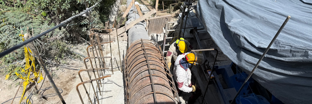 Todo esto, en una zona rural de difícil acceso, donde cada avance de obra requirió ingenio y coordinación, como fue, la construcción de un monorriel para el transporte de materiales y la optimización de los recursos.